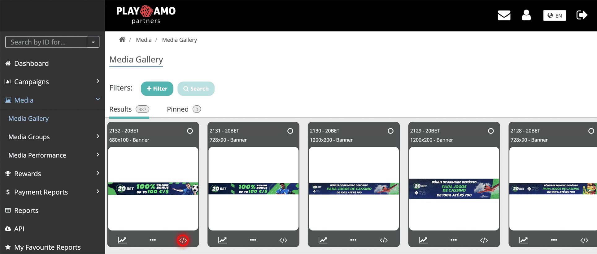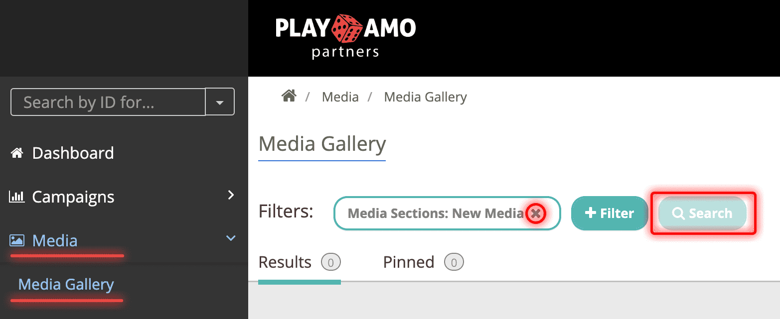 Abra la sección Medios (solo disponible en la versión de escritorio) y, a continuación, Galería de medios