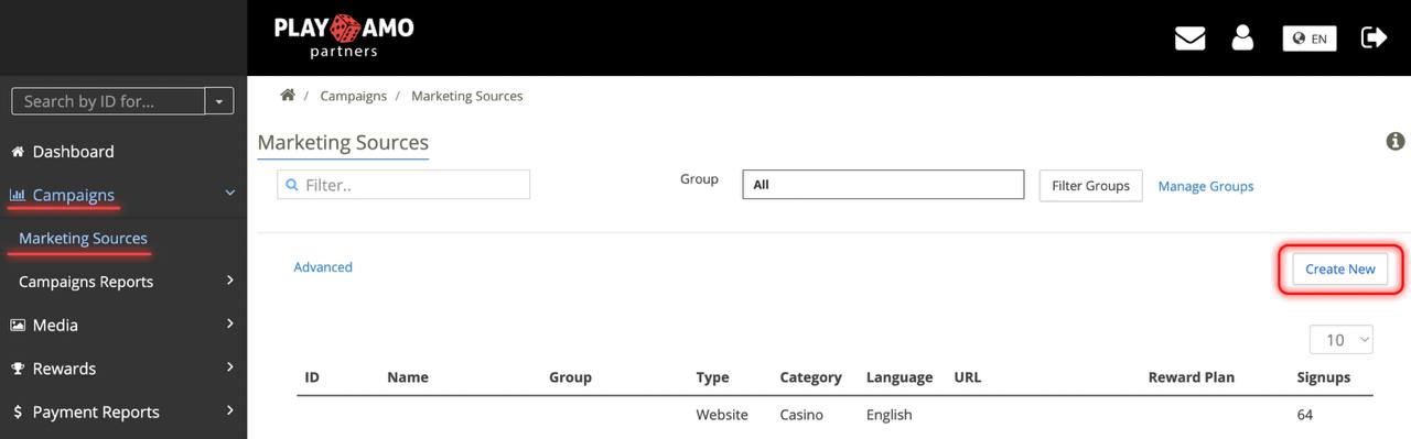 Seleccione las fuentes de marketing y las páginas de destino and Landing pages que le